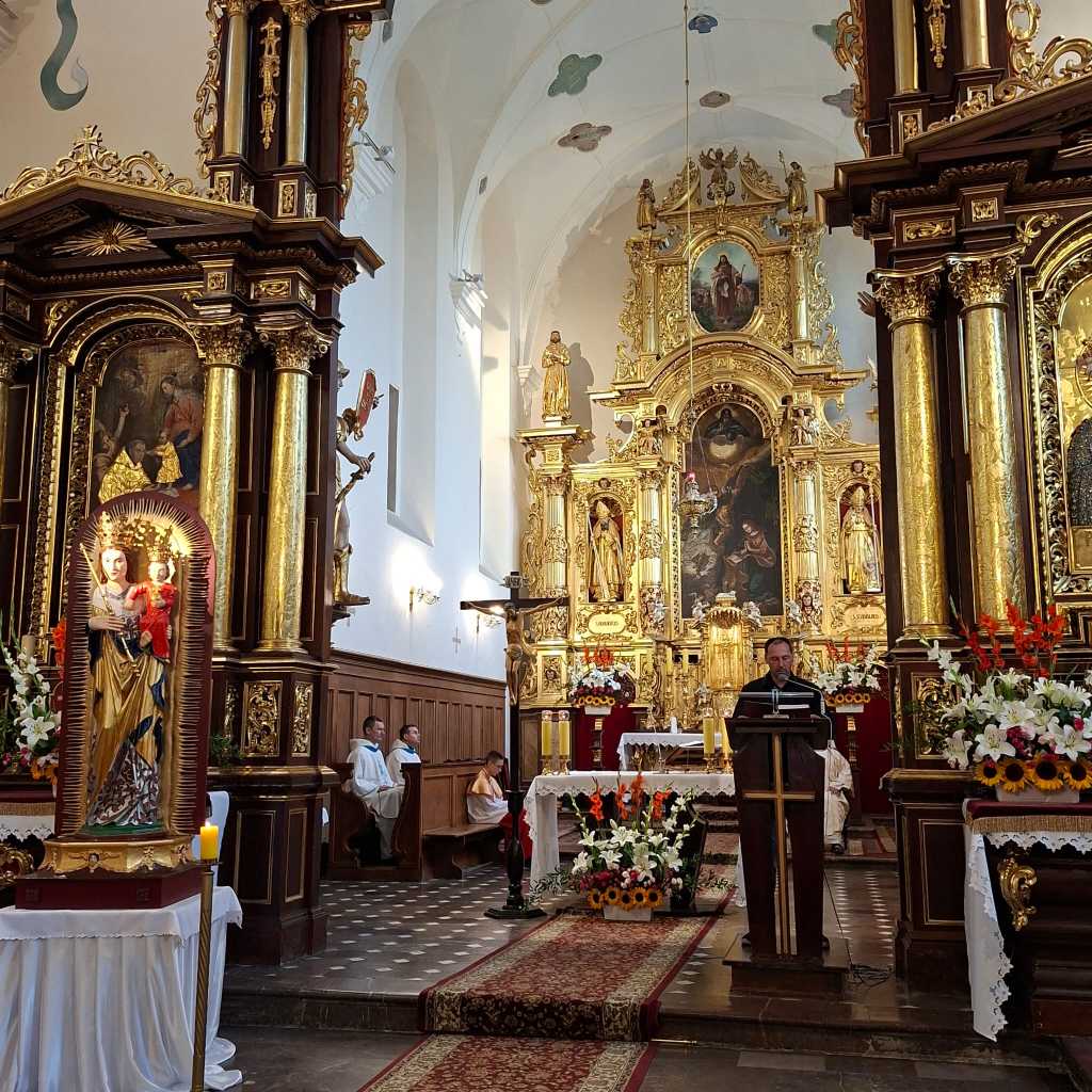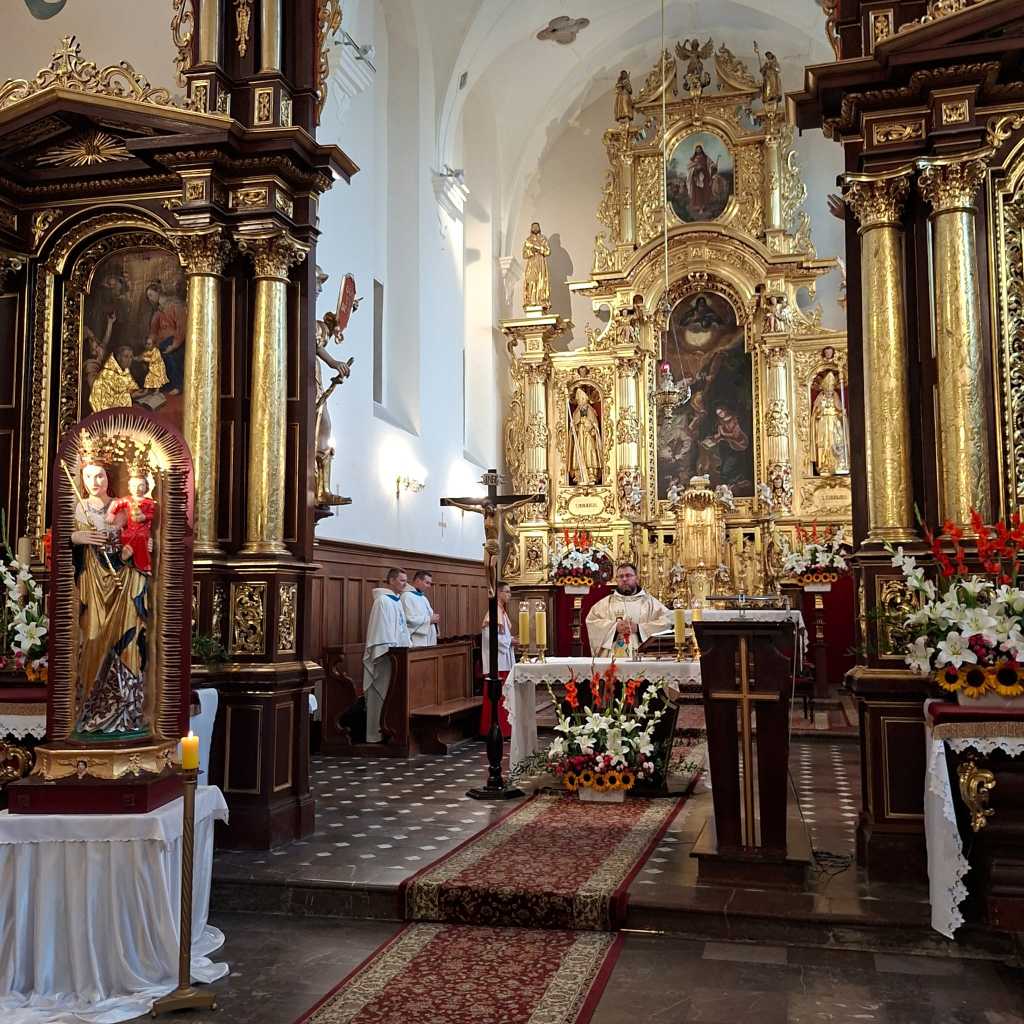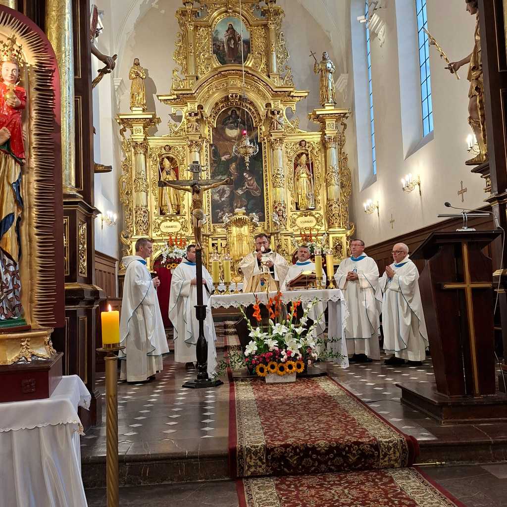 Była to zarazem Msza Święta kończąca tegoroczne uroczystości odpustowe i okazja do wyrażenia wdzięczności o. Marcinowi Fizi OCD, który głosił kazania podczas triduum i odpustu.