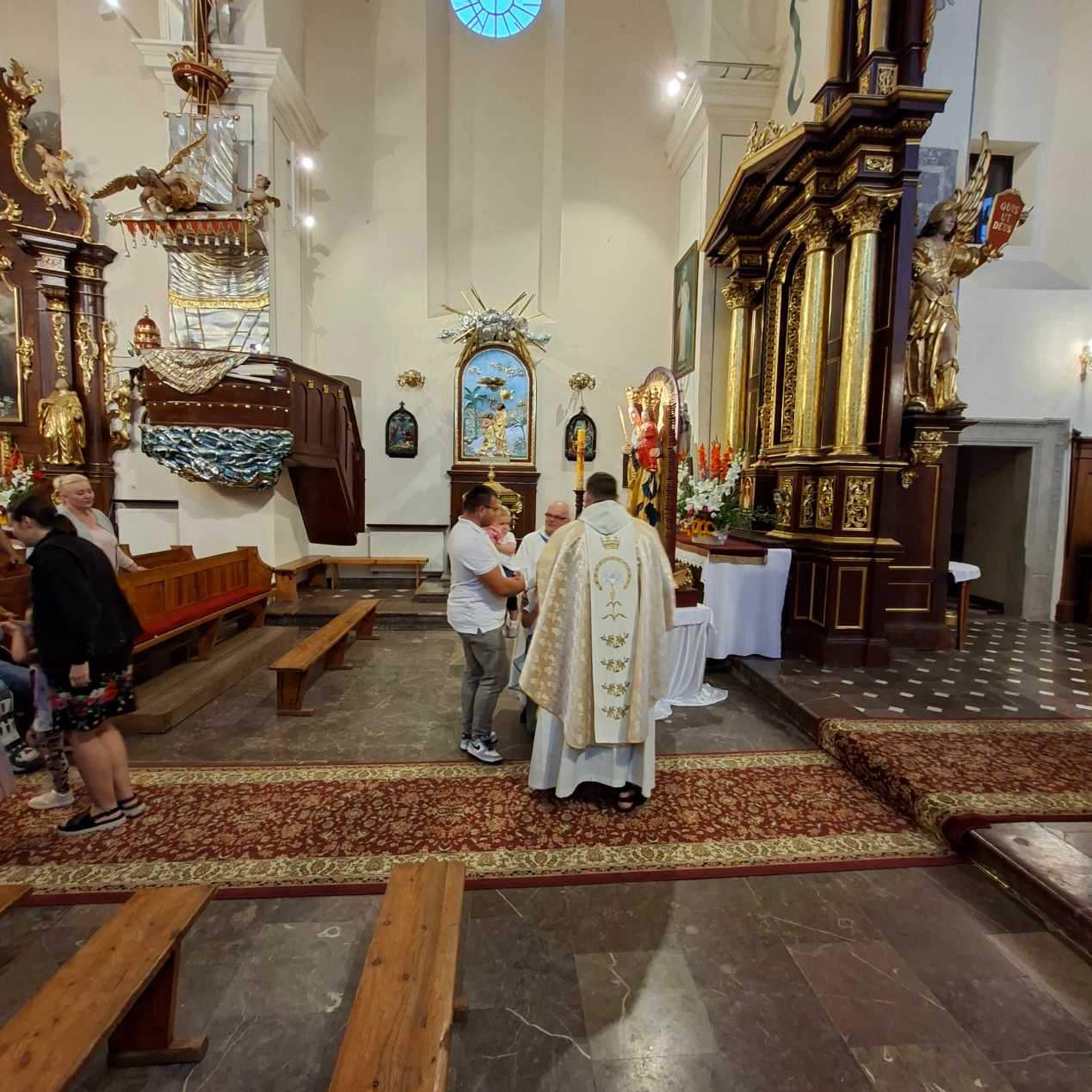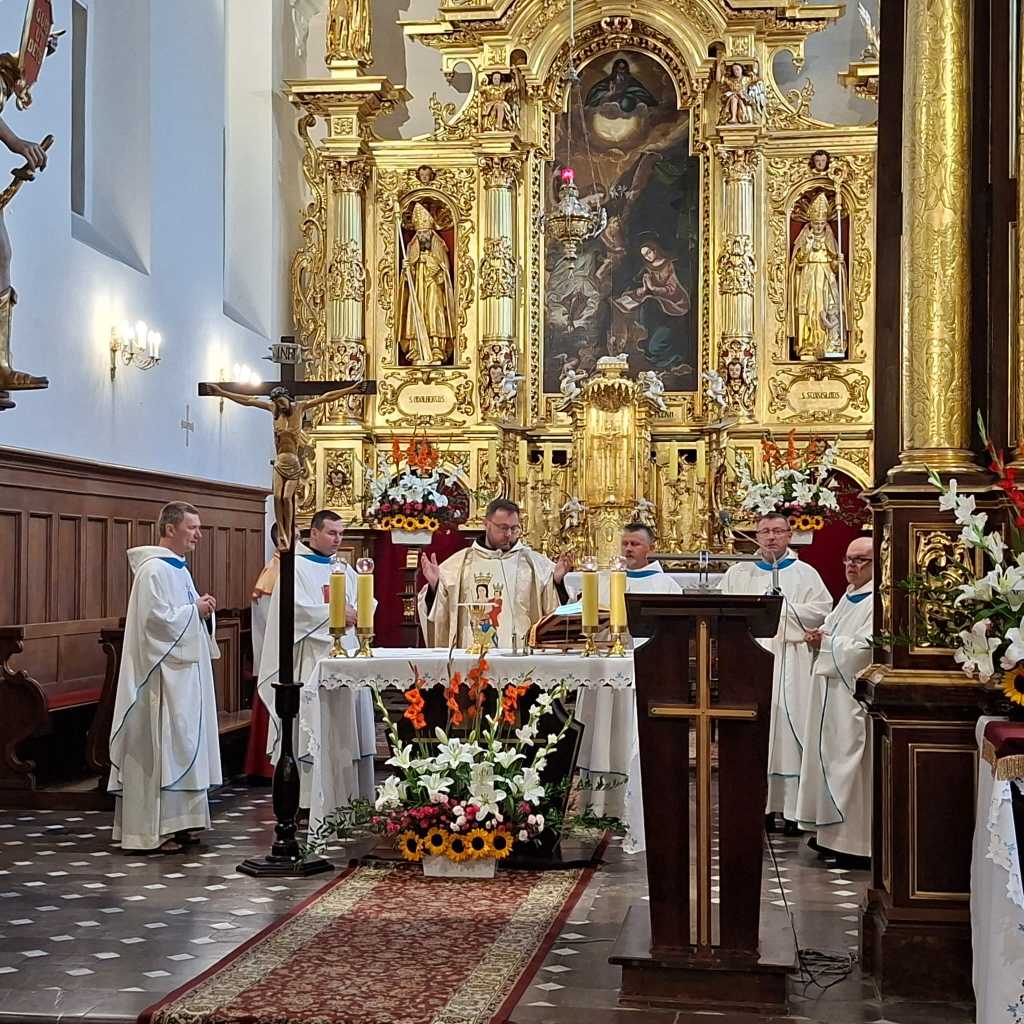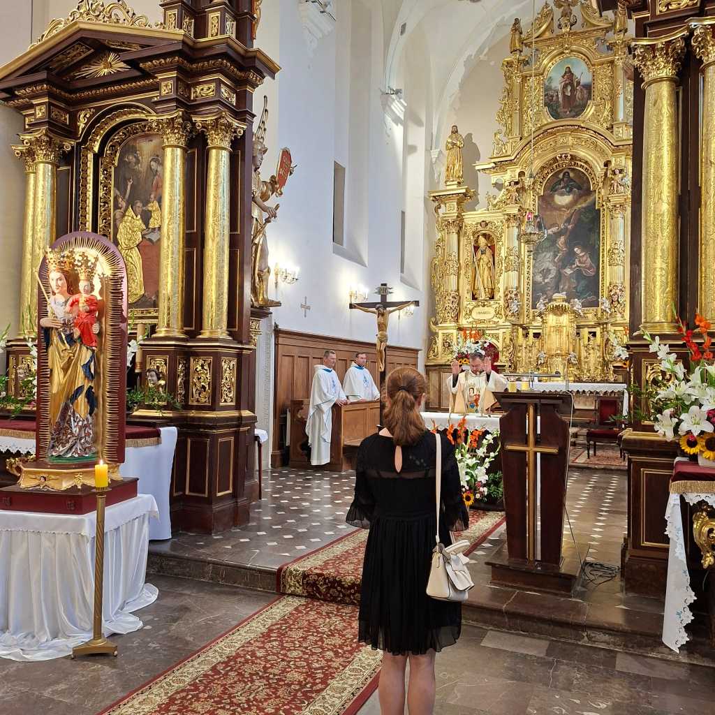 Była to zarazem Msza Święta kończąca tegoroczne uroczystości odpustowe i okazja do wyrażenia wdzięczności o. Marcinowi Fizi OCD, który głosił kazania podczas triduum i odpustu.