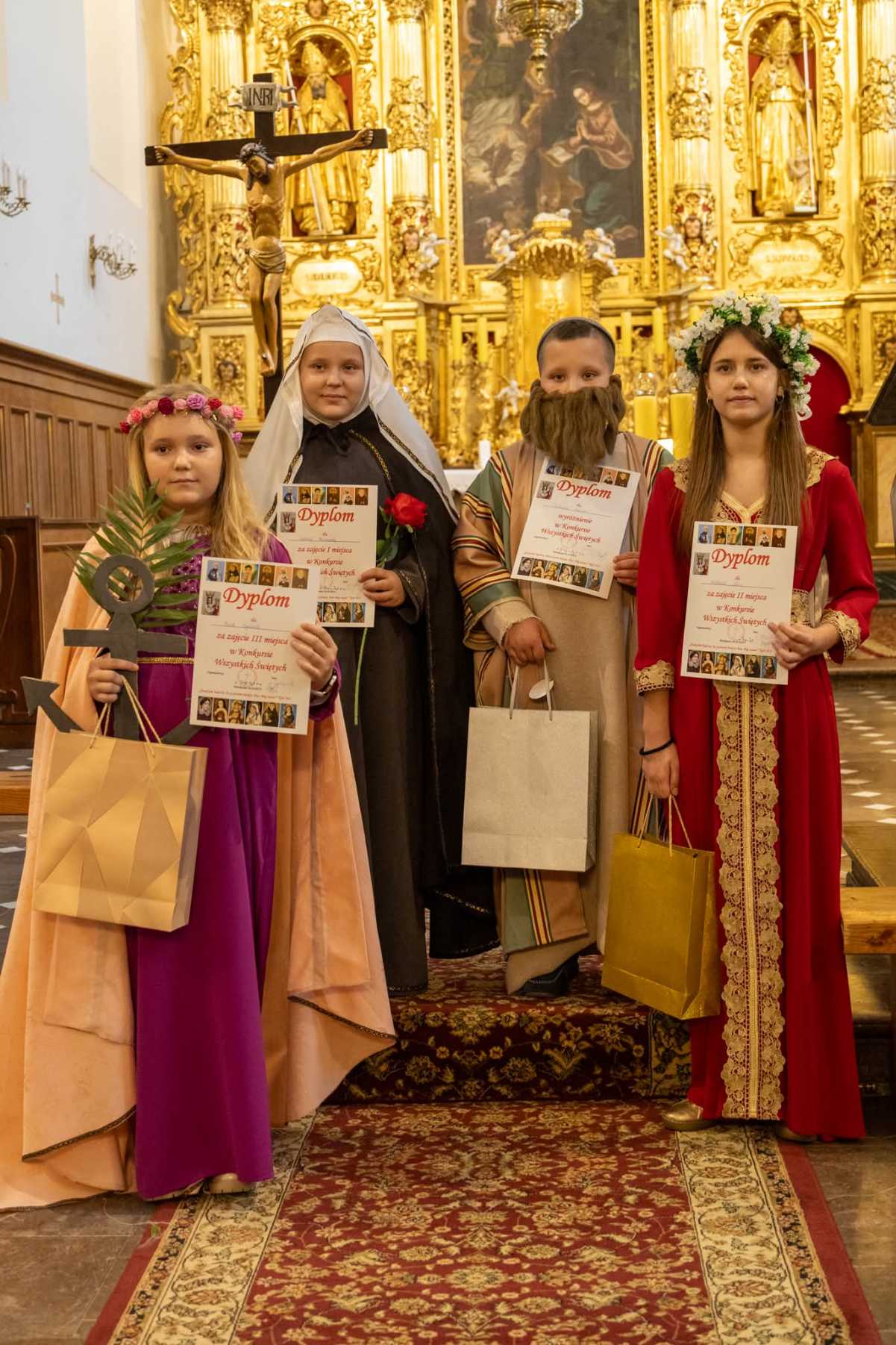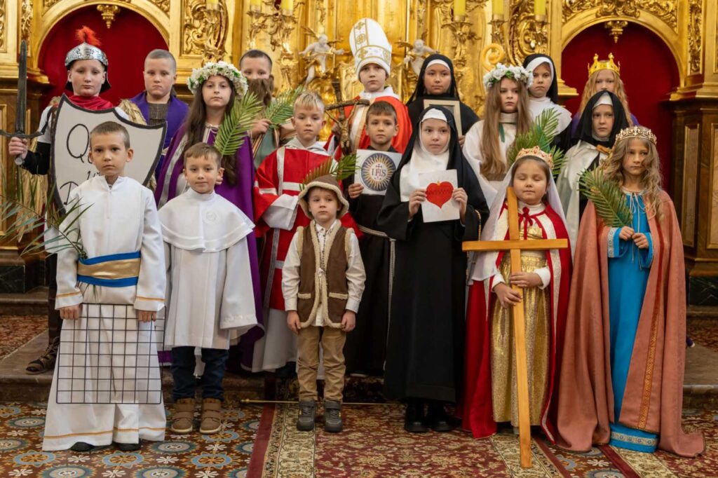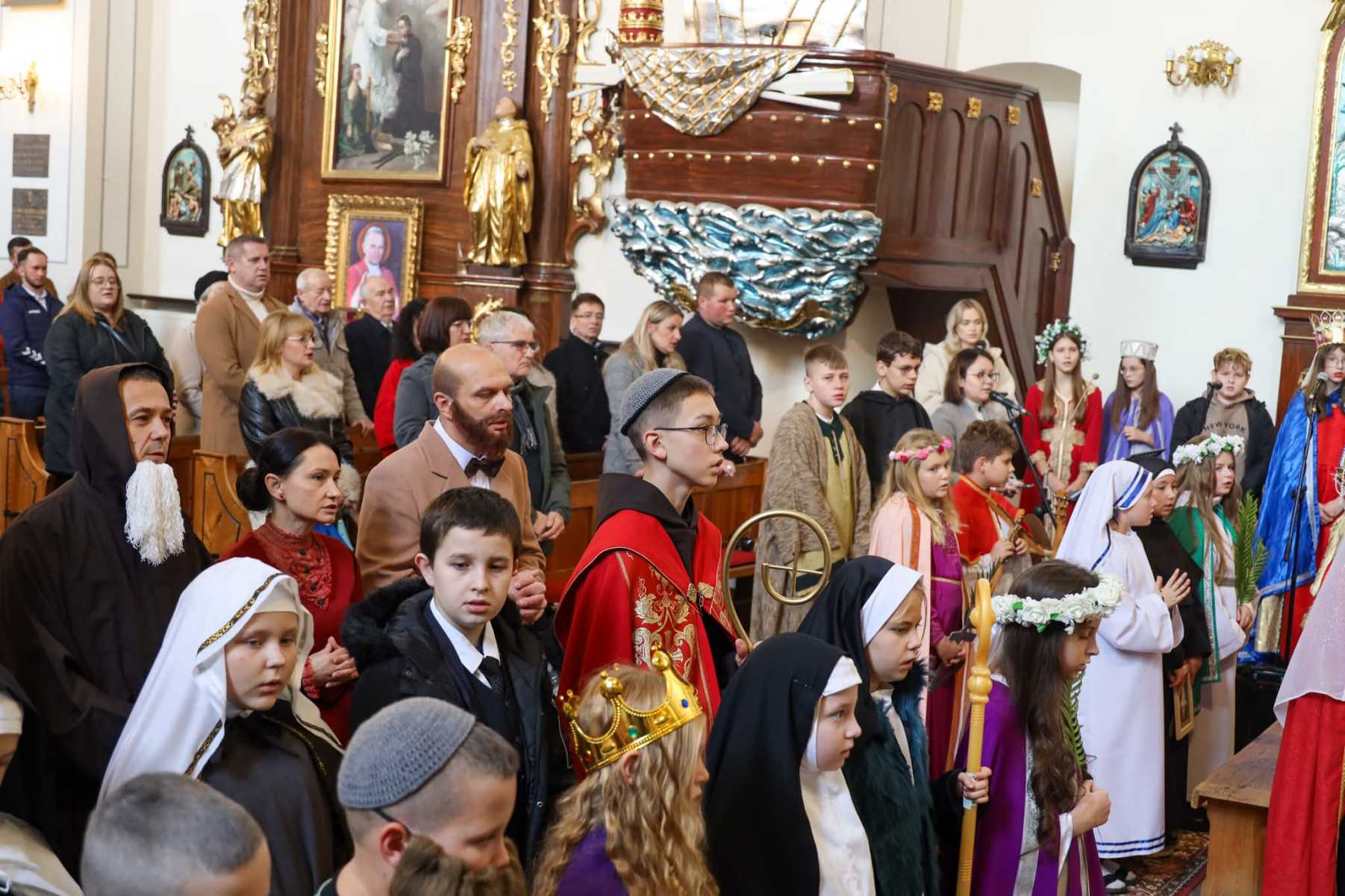 W niedzielę 26 października nasze Sanktuarium wypełniło się wyjątkowymi gośćmi podczas Mszy świętej o godzinie 11:30. Uczestnicy, w pięknych strojach swoich świętych, wzięli udział w procesji razem z celebransem Mszy, a następnie aktywnie uczestniczyli we wspólnej modlitwie. Po Eucharystii odbył się kolejny Konkurs Wszystkich Świętych, w którym wzięły udział przedszkolaki, uczniowie ze szkół w Piotrkowicach i Włoszczowicach oraz dorośli.