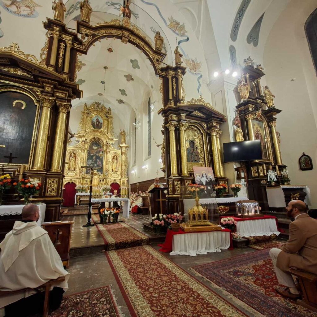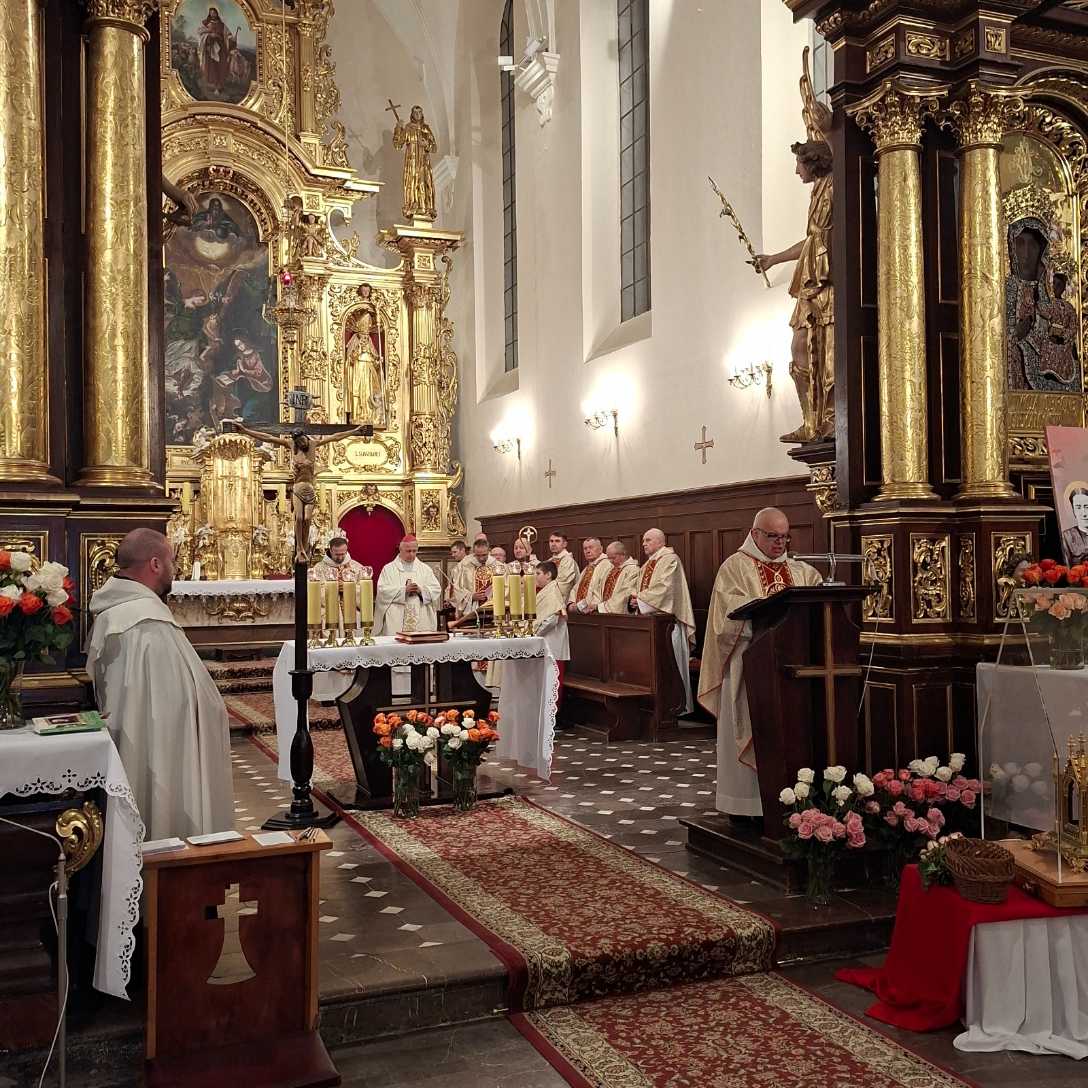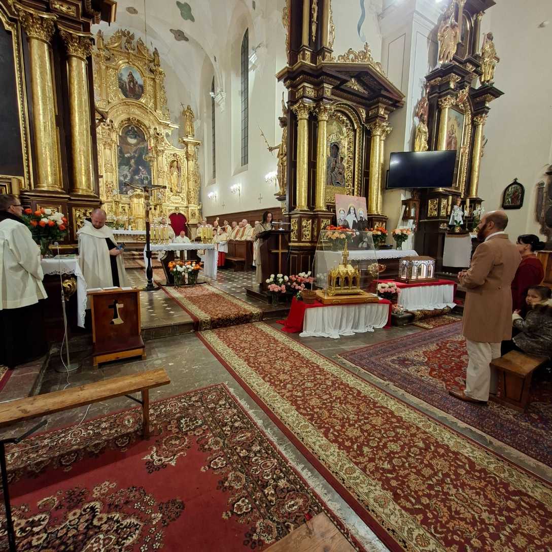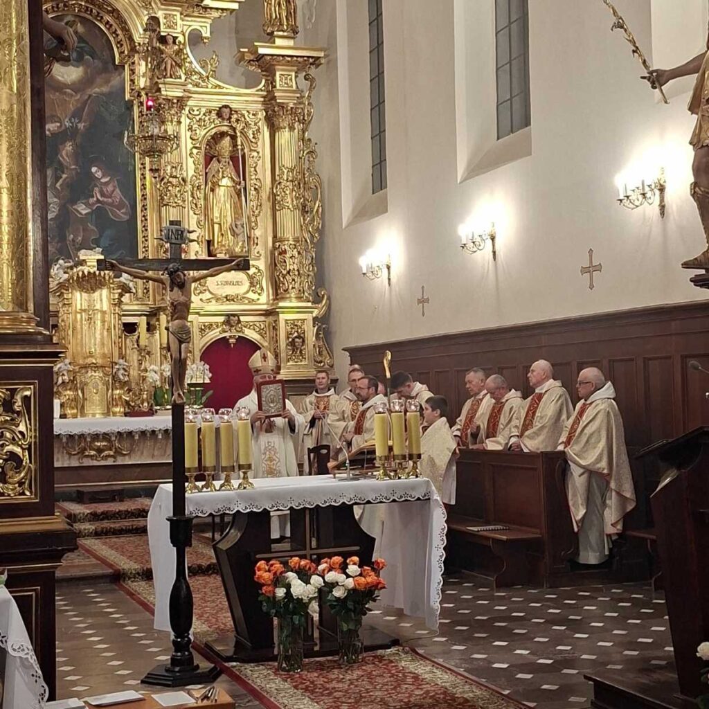 Kolejnym punktem peregrynacji Relikwii w naszym Sanktuarium, była uroczysta Msza Święta o godz. 18.00, której przewodniczył kielecki ordynariusz, bp Jan Piotrowski. Uczestniczył w niej również o. Prowincjał Tadeusz Florek, miejscowa wspólnota, księża z okolicznych dekanatów, a także reprezentanci grup duszpasterskich i liczni wierni.