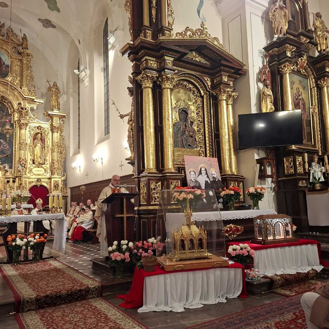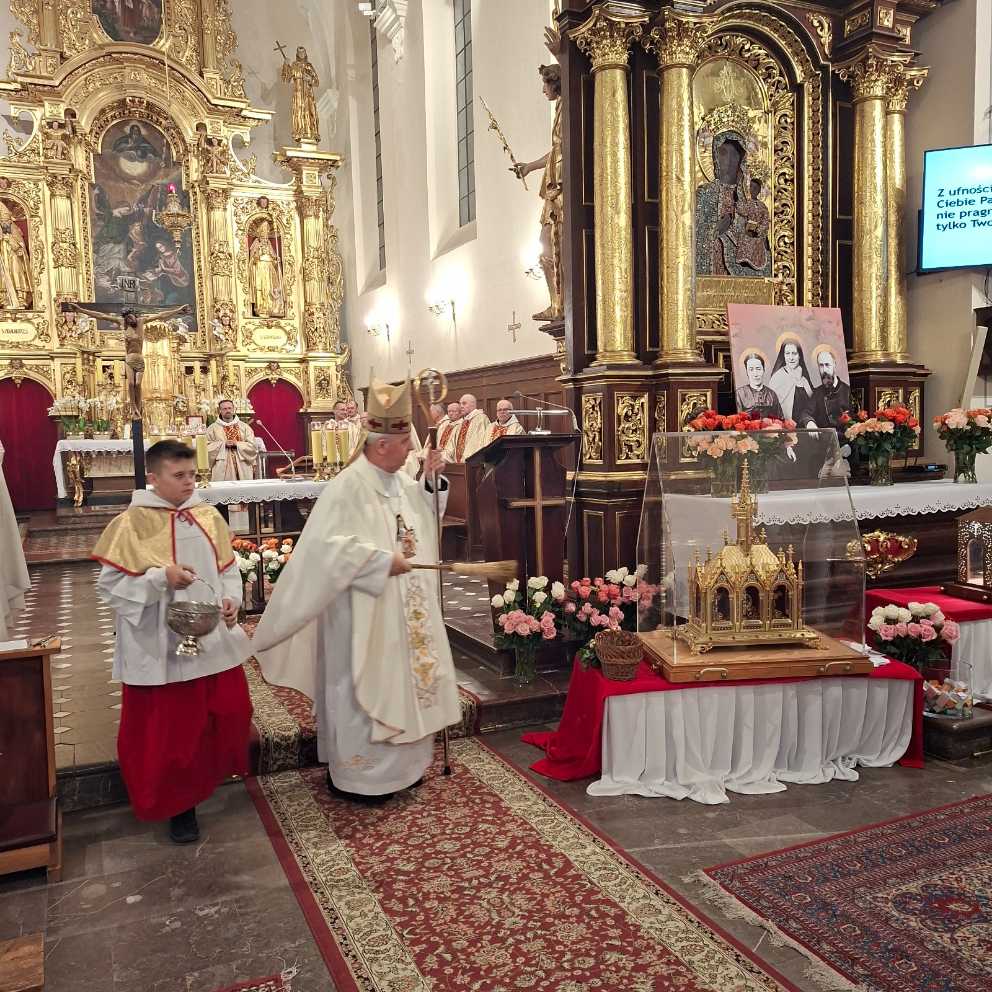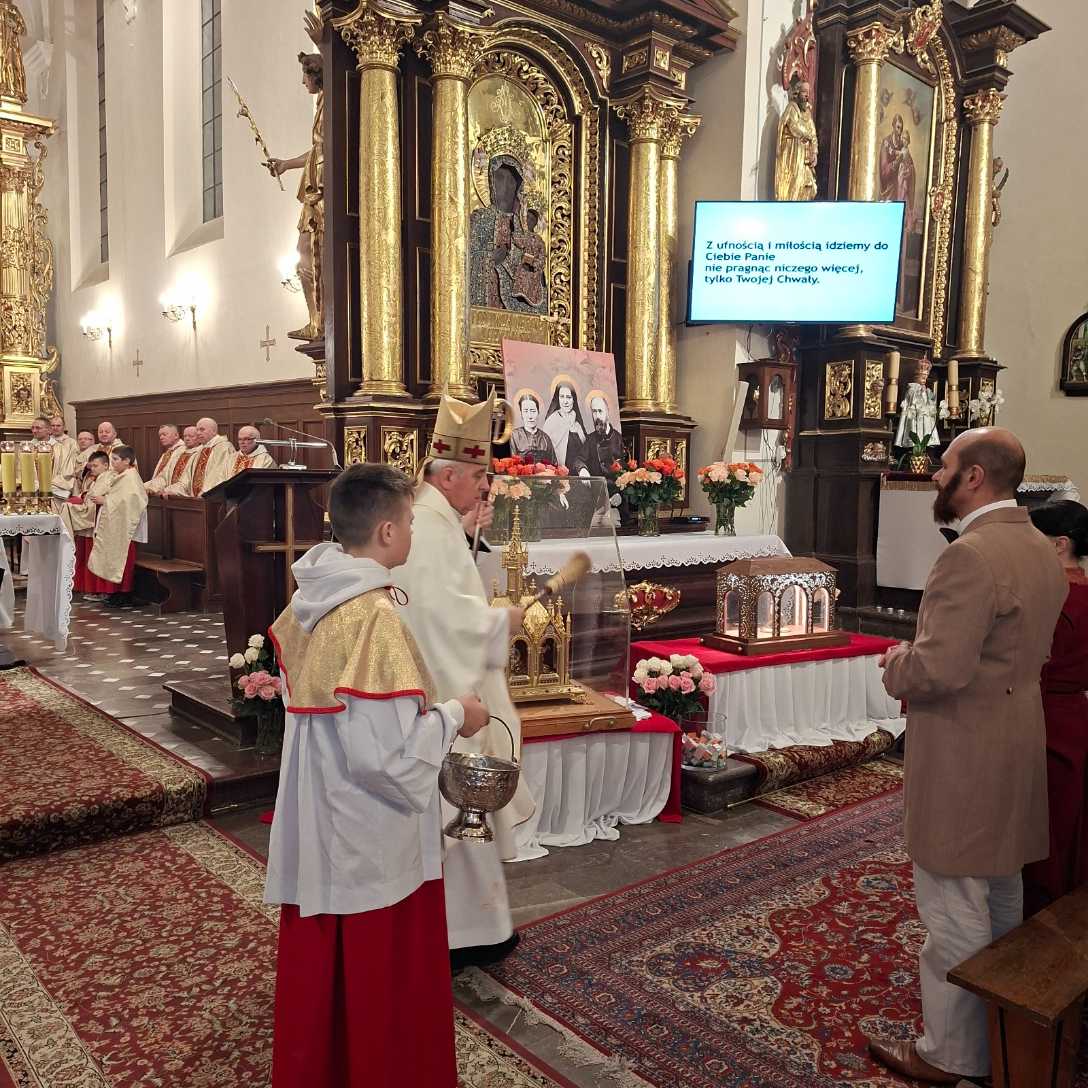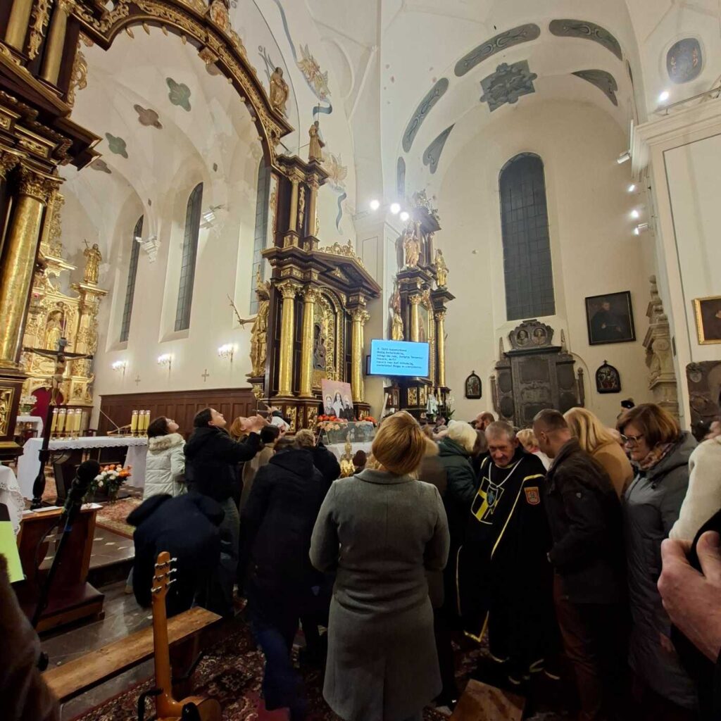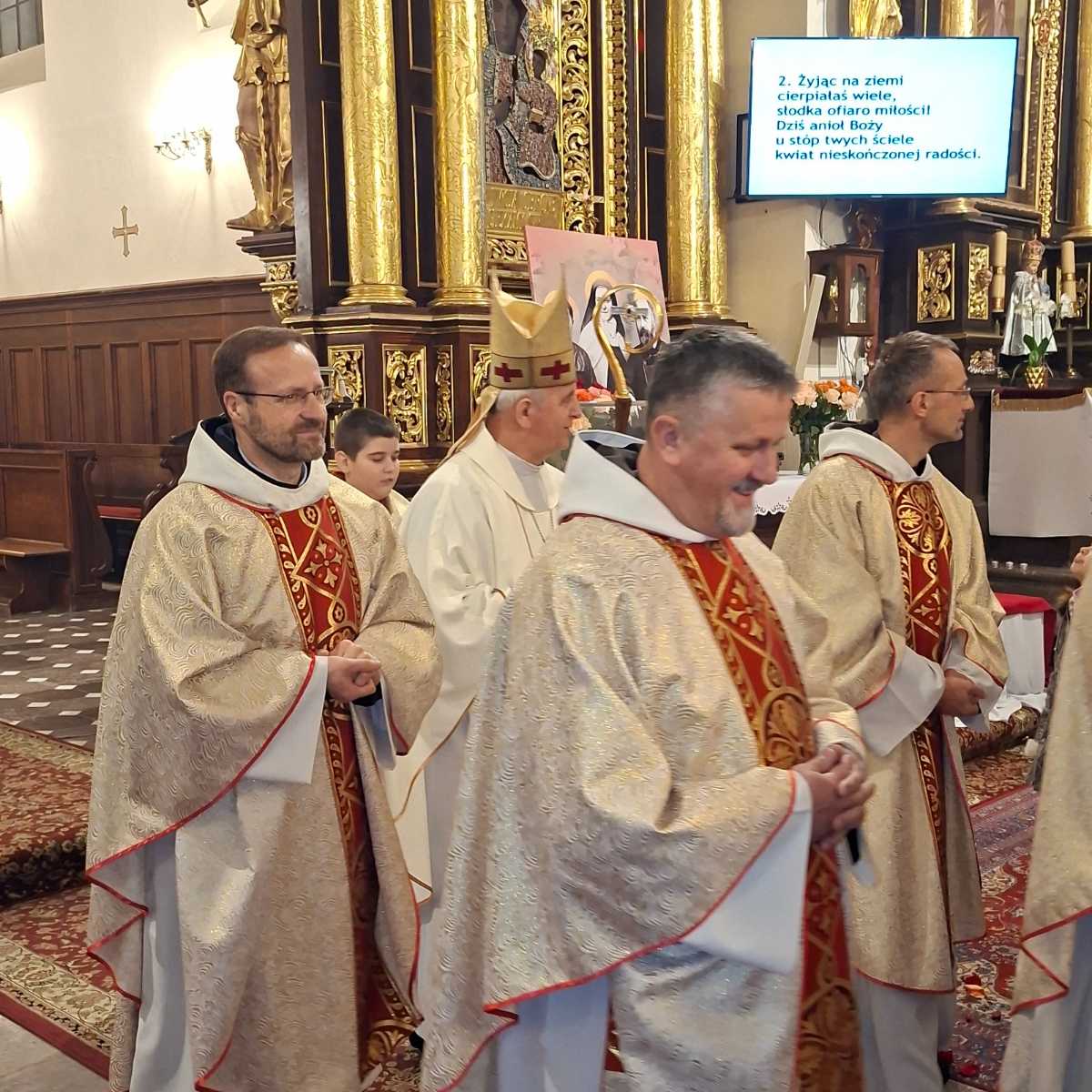 Kolejnym punktem peregrynacji Relikwii w naszym Sanktuarium, była uroczysta Msza Święta o godz. 18.00, której przewodniczył kielecki ordynariusz, bp Jan Piotrowski. Uczestniczył w niej również o. Prowincjał Tadeusz Florek, miejscowa wspólnota, księża z okolicznych dekanatów, a także reprezentanci grup duszpasterskich i liczni wierni.
