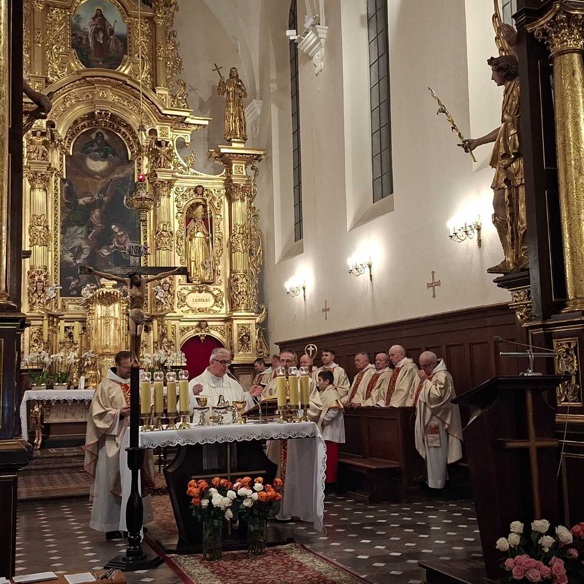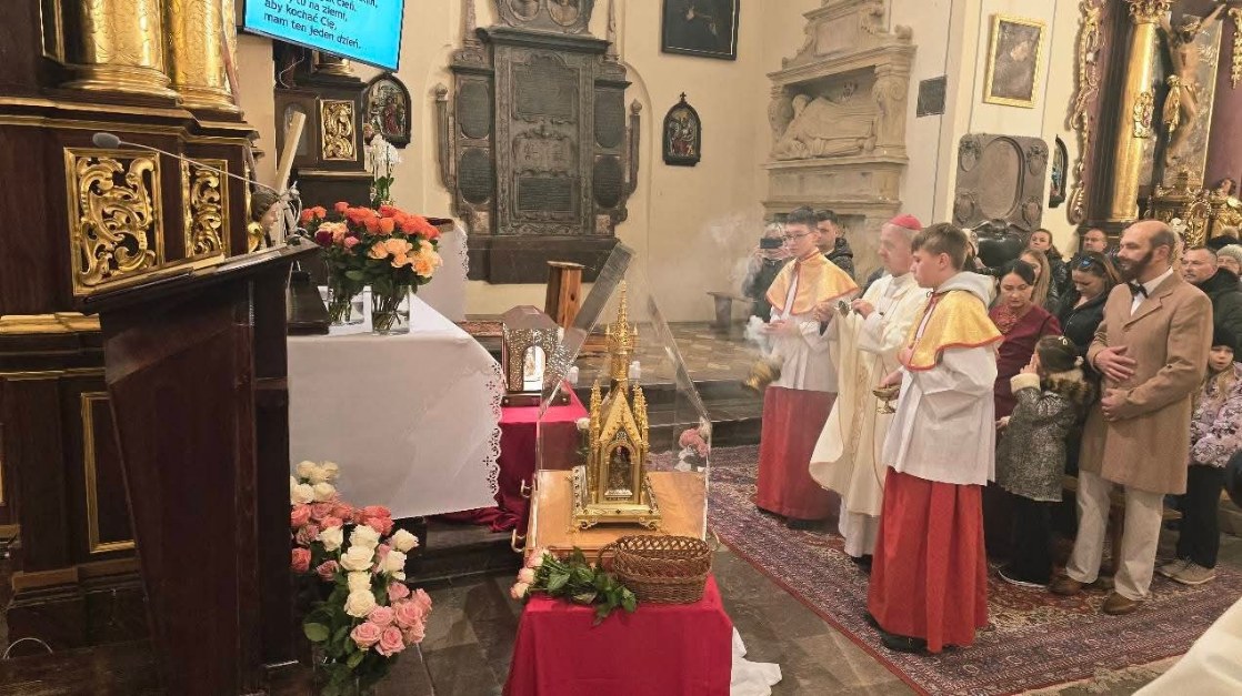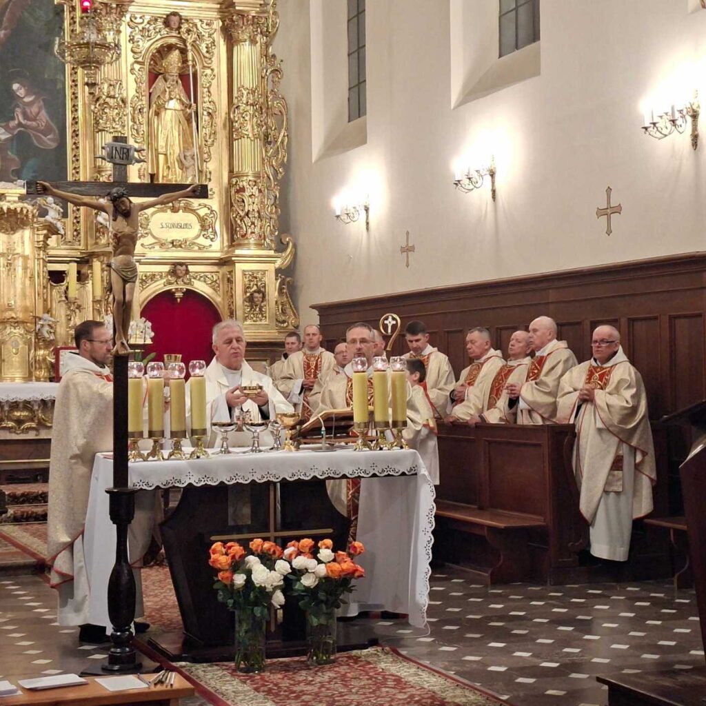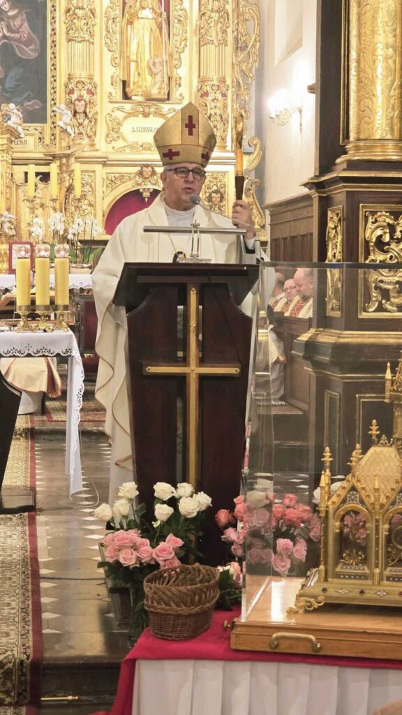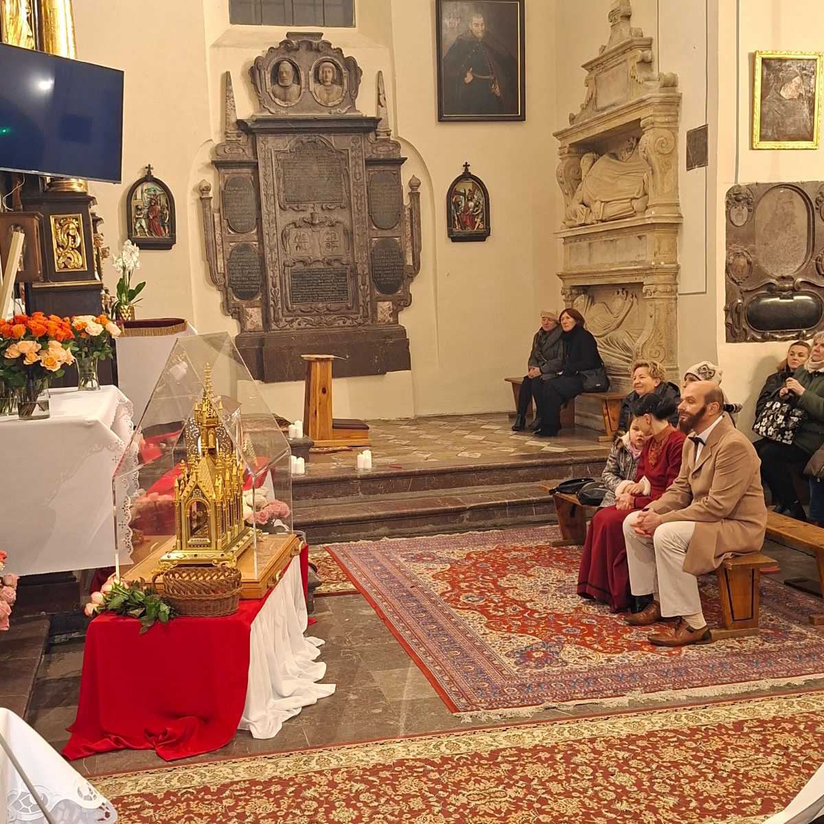 Kolejnym punktem peregrynacji Relikwii w naszym Sanktuarium, była uroczysta Msza Święta o godz. 18.00, której przewodniczył kielecki ordynariusz, bp Jan Piotrowski. Uczestniczył w niej również o. Prowincjał Tadeusz Florek, miejscowa wspólnota, księża z okolicznych dekanatów, a także reprezentanci grup duszpasterskich i liczni wierni.