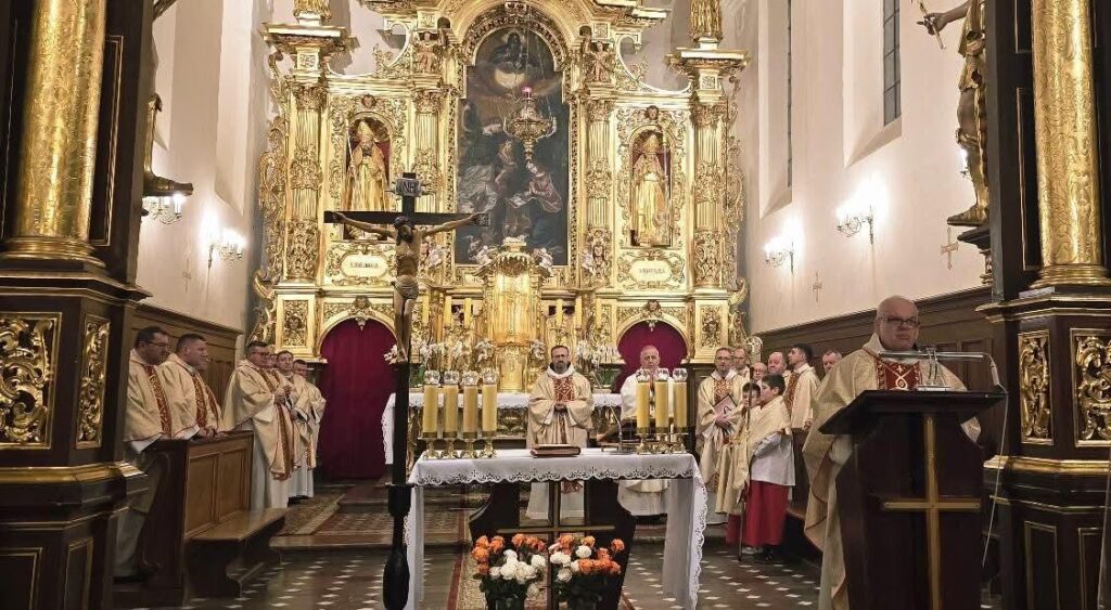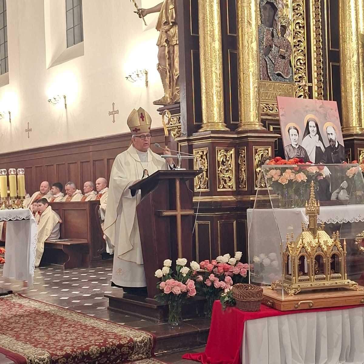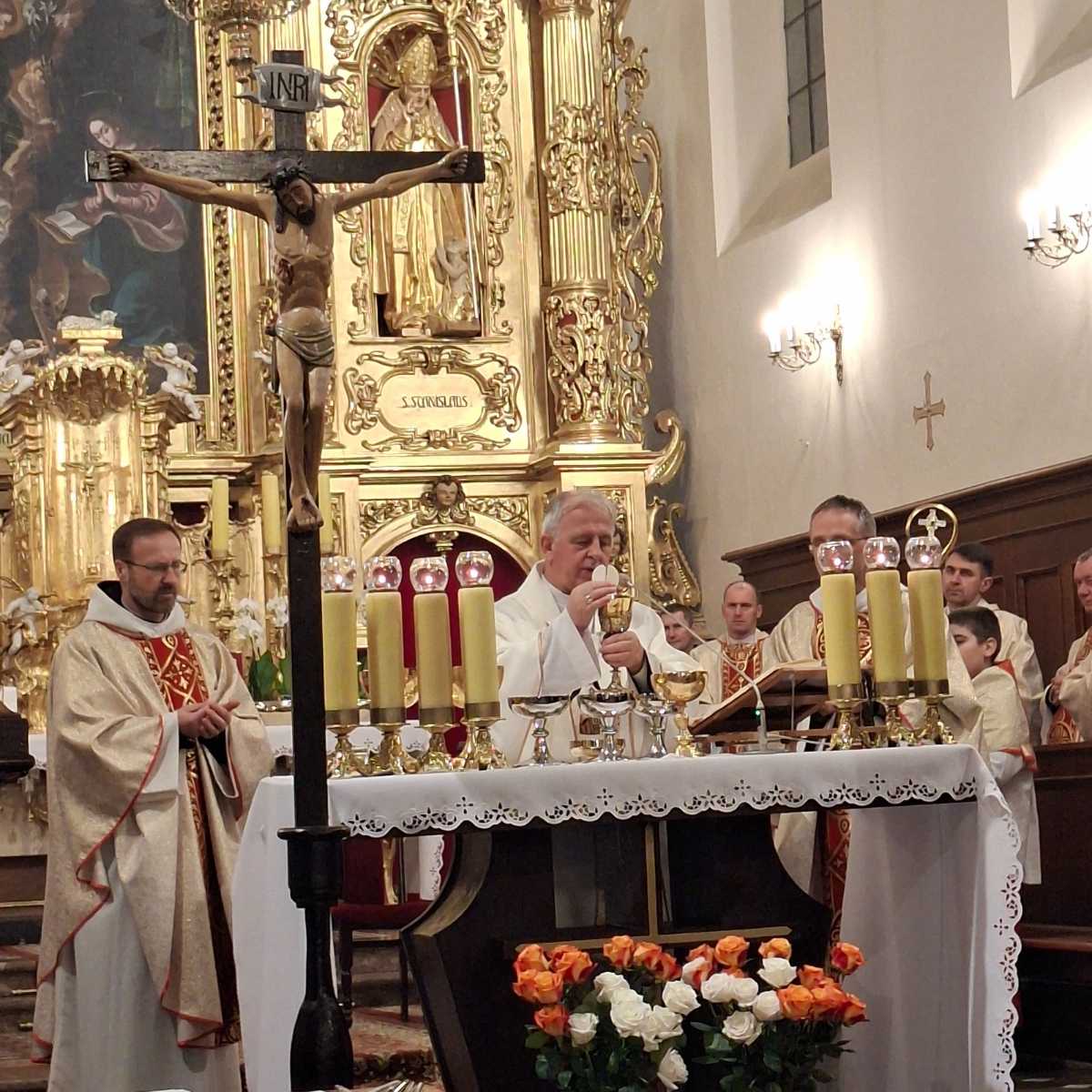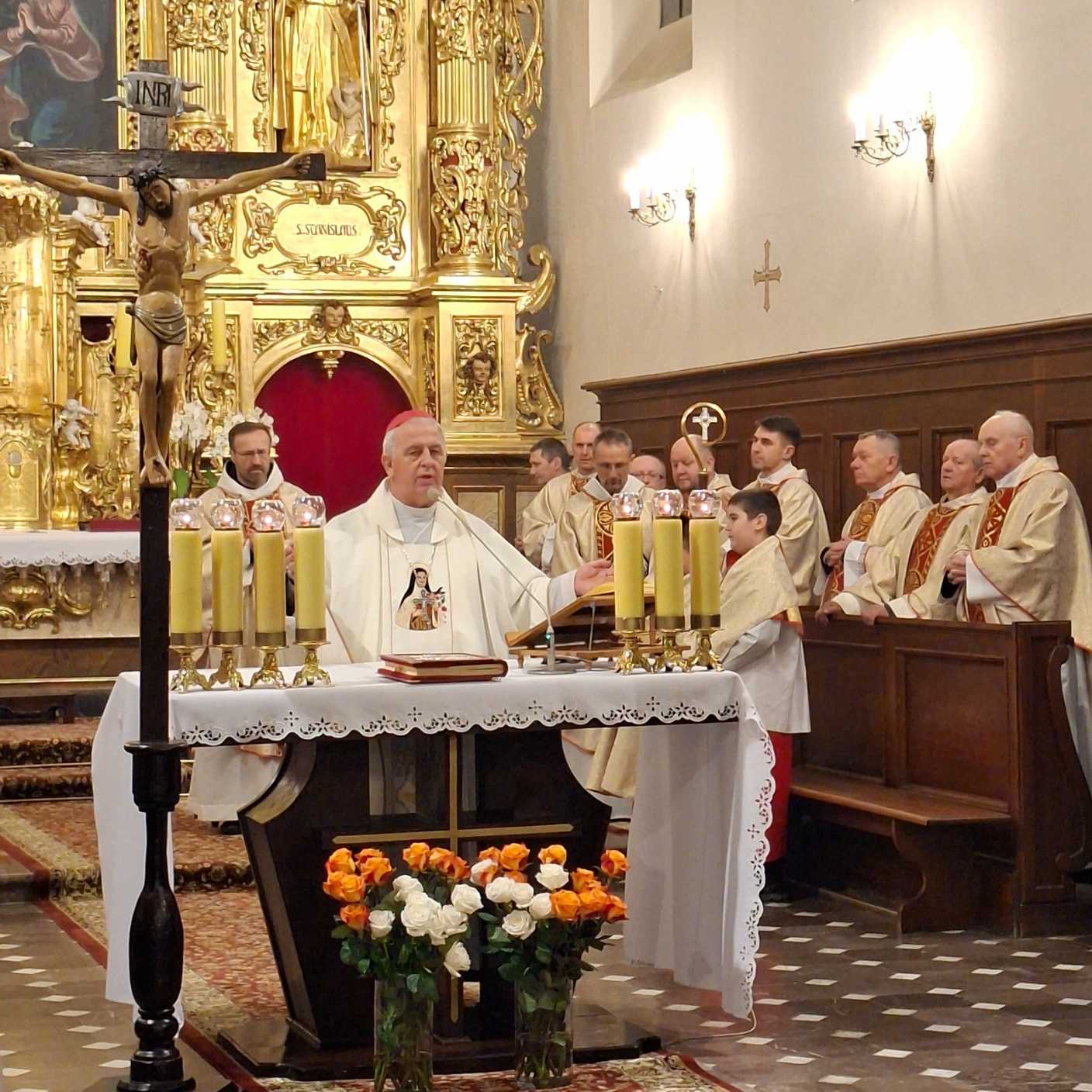 Kolejnym punktem peregrynacji Relikwii w naszym Sanktuarium, była uroczysta Msza Święta o godz. 18.00, której przewodniczył kielecki ordynariusz, bp Jan Piotrowski. Uczestniczył w niej również o. Prowincjał Tadeusz Florek, miejscowa wspólnota, księża z okolicznych dekanatów, a także reprezentanci grup duszpasterskich i liczni wierni.