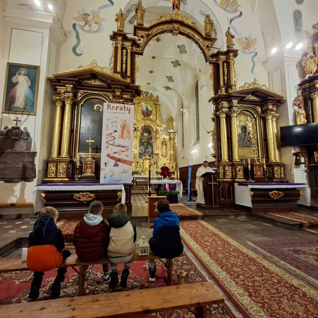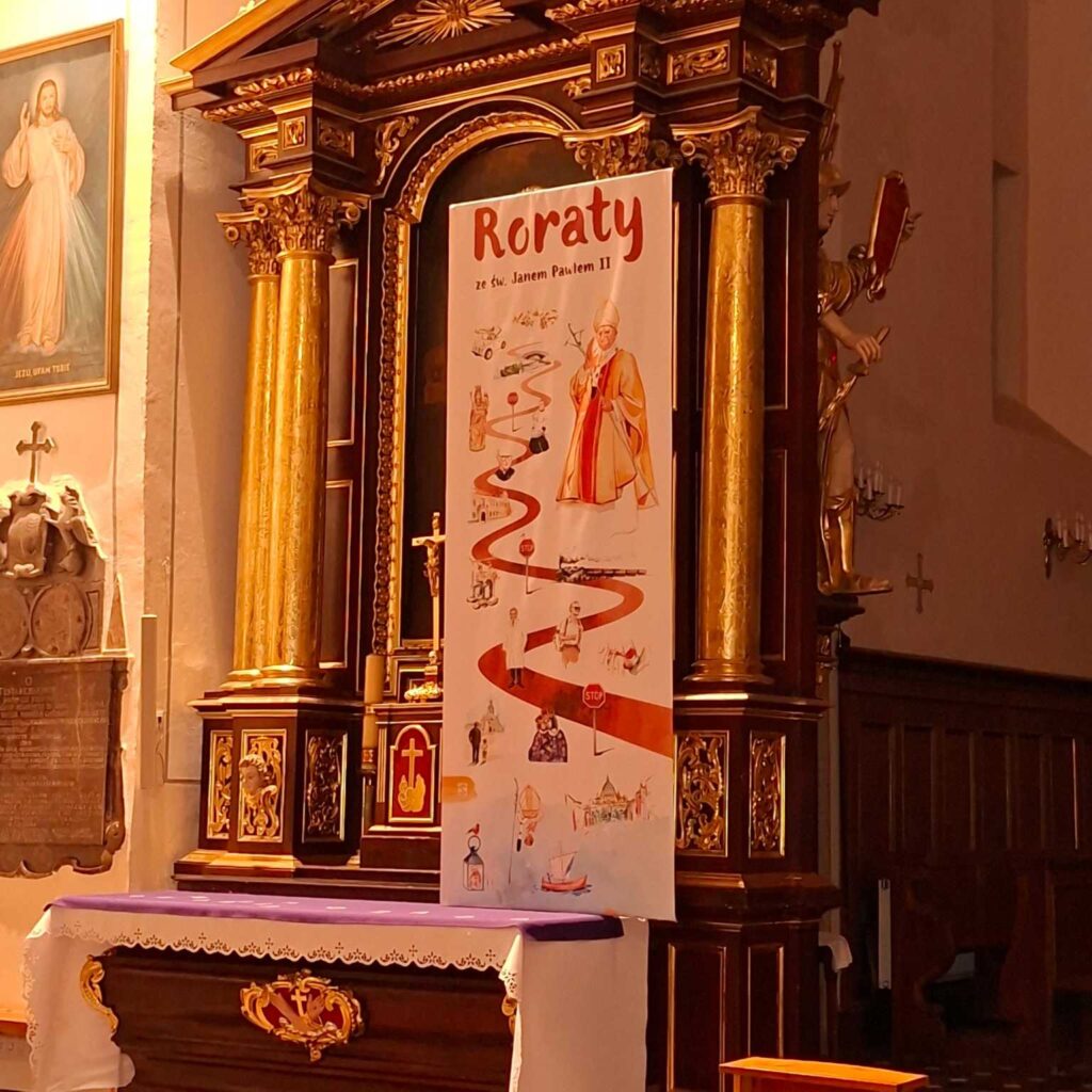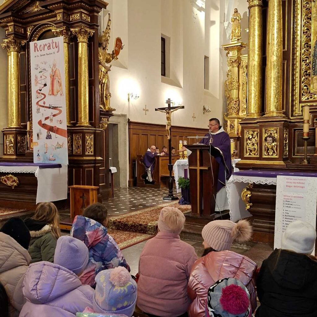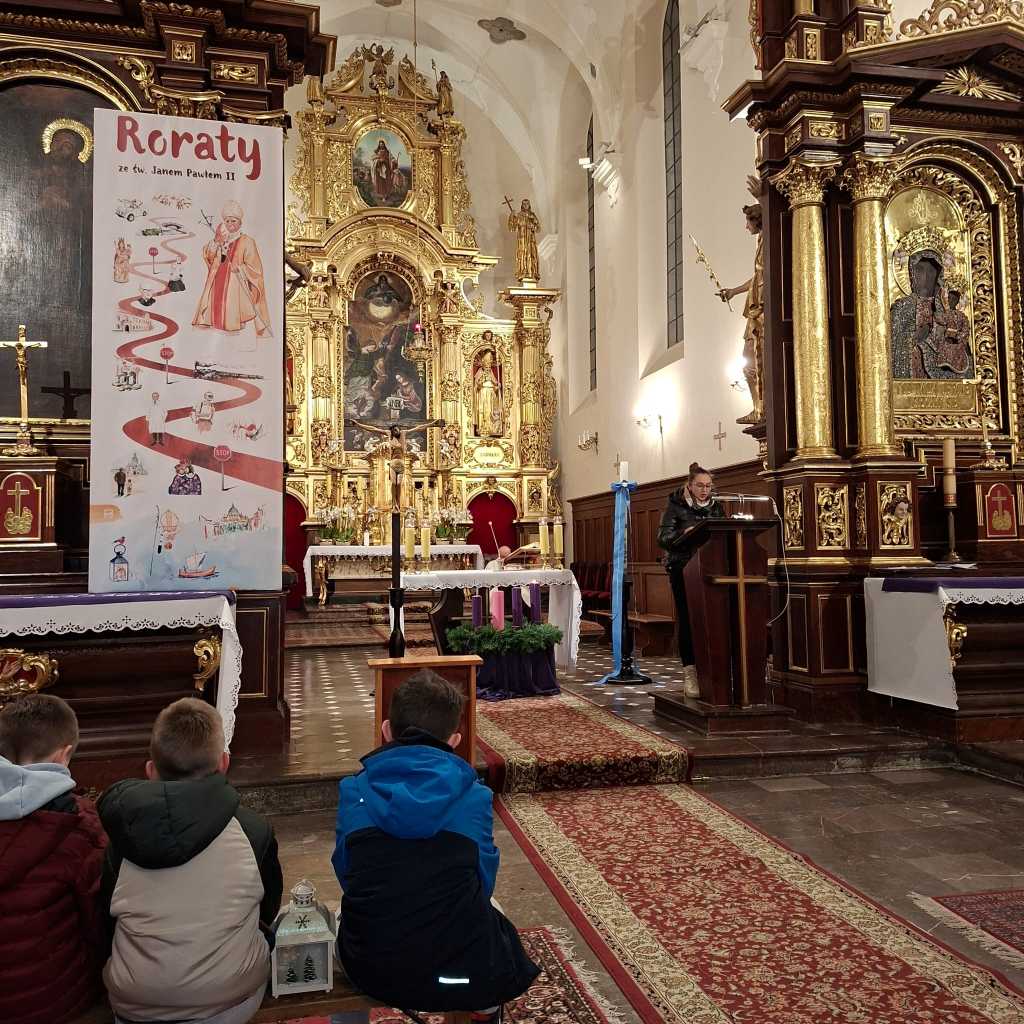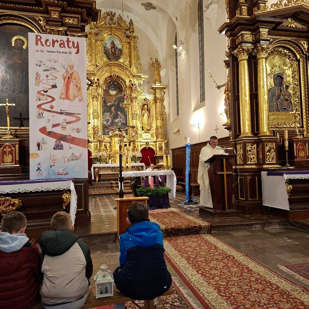 Tegoroczne Roraty przeżywaliśmy razem z św. Janem Pawłem II. Każdego dnia odkrywaliśmy kolejne karty z życia Wielkiego Polaka — papieża, pasterza, pielgrzyma i człowieka głębokiej wiary. Jego słowa, świadectwo i duchowa droga pomagały nam lepiej zrozumieć sens Adwentu oraz uczyły zawierzenia Bogu i Maryi.