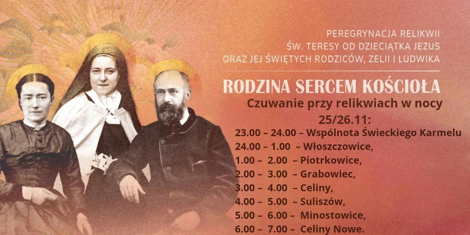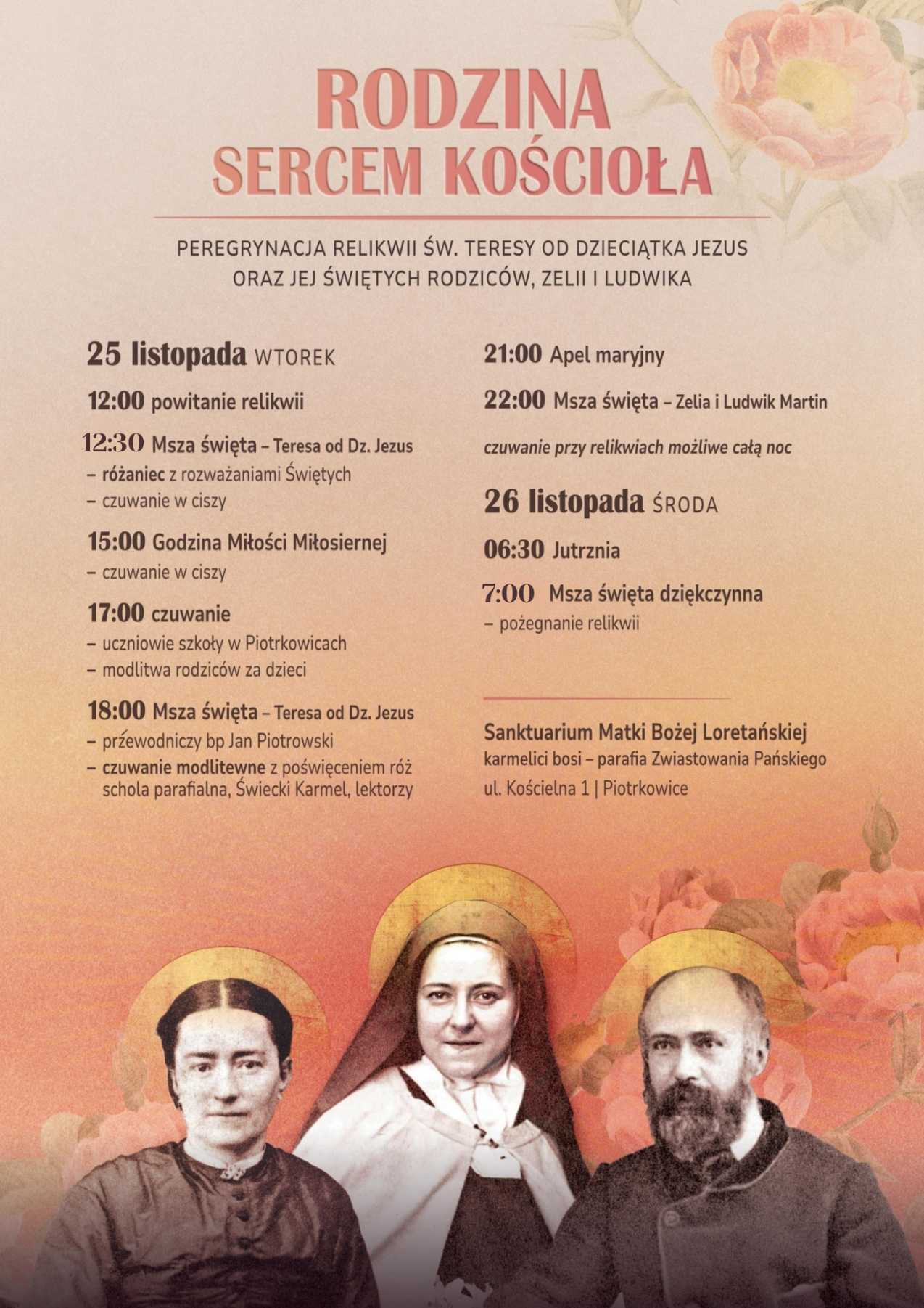 Szczegółowy plan Peregrynacji Relikwii Świętej Teresy od Dzieciątka Jezus oraz jej Świętych rodziców Zelii i Ludwika Martin, 25-26.11.2025r.