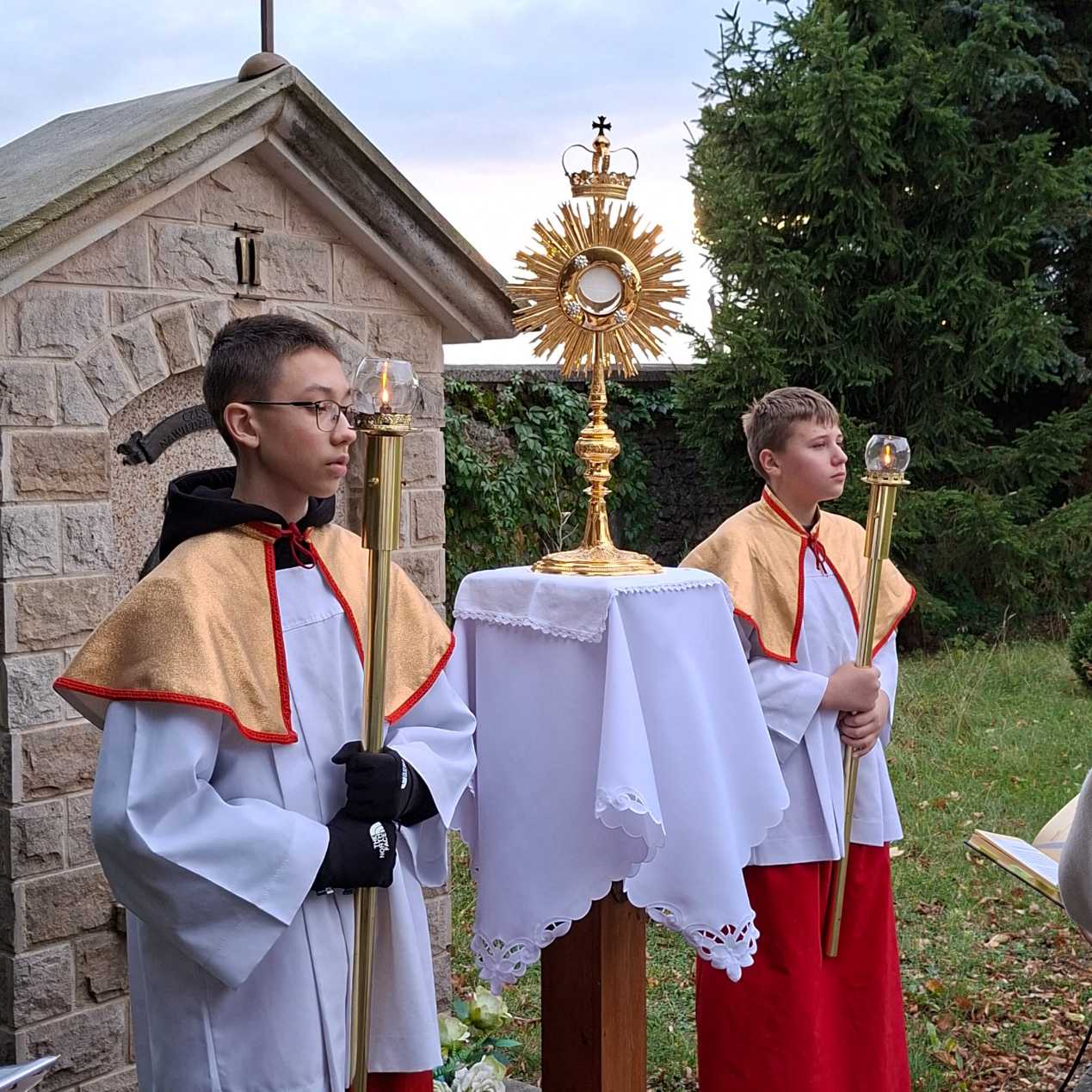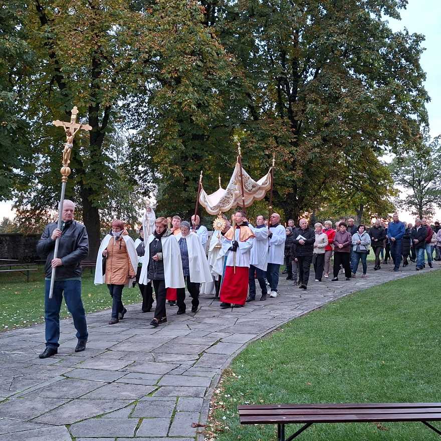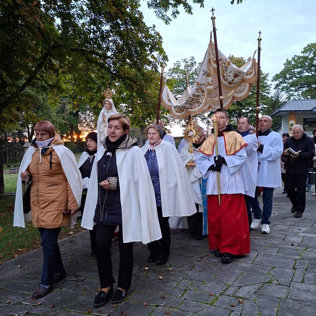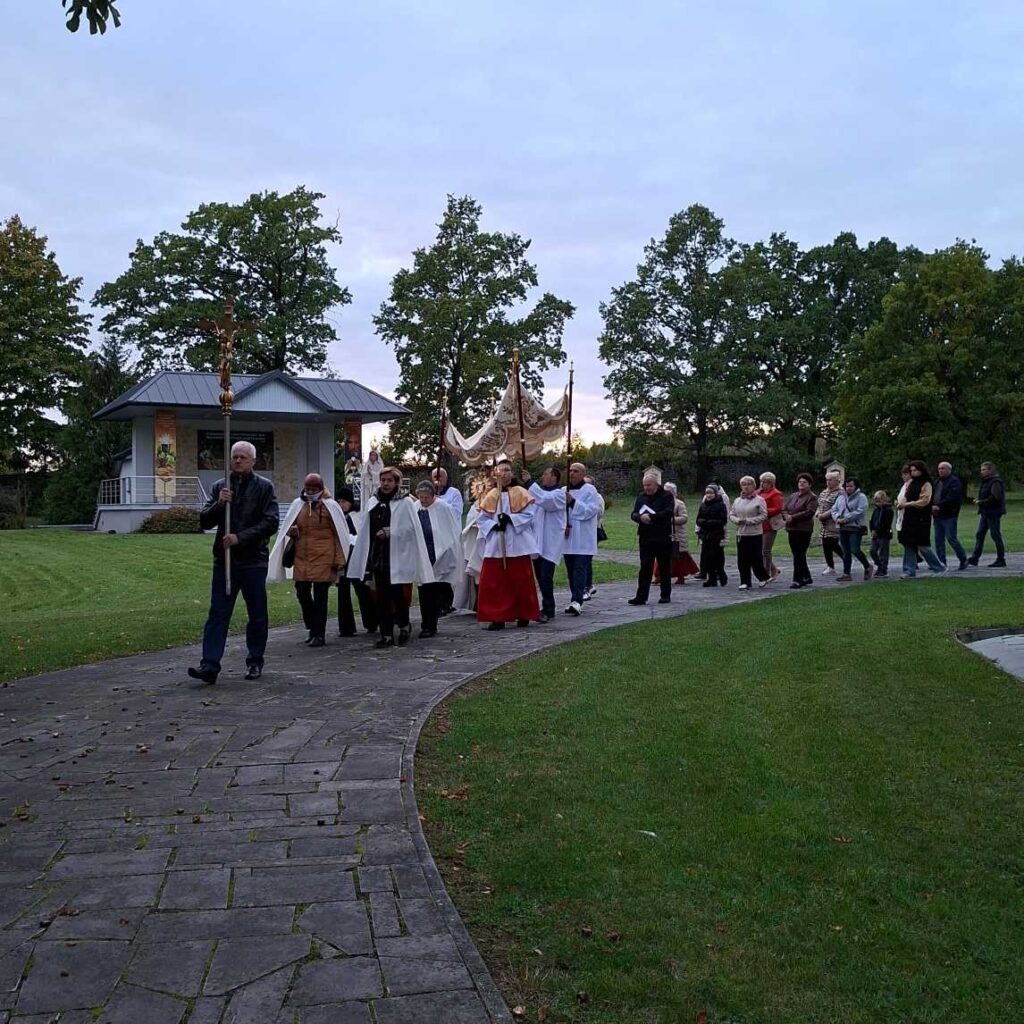 W niedzielę, 5 października, o godzinie 17.00 odbyła się uroczysta procesja różańcowa z Najświętszym Sakramentem po dróżkach różańcowych do pięciu ołtarzy. Wspólnota parafialna zebrała się, aby w modlitewnym skupieniu uczestniczyć w tym pięknym nabożeństwie.
