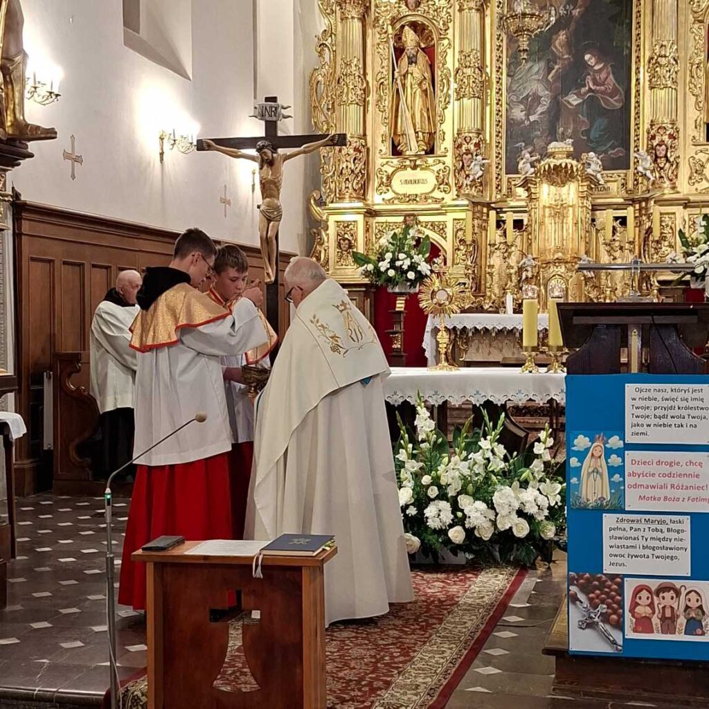 Przed błogosławieństwem Najświętszym Sakramentem wszyscy wspólnie odśpiewaliśmy Magnificat – pieśń „Uwielbiaj, duszo moja, sławę Pana mego”, wyrażając wdzięczność i uwielbienie wobec Boga. Następnie ojciec proboszcz udzielił uroczystego błogosławieństwa Najświętszym Sakramentem, kończąc nabożeństwo w duchu modlitwy i radości.