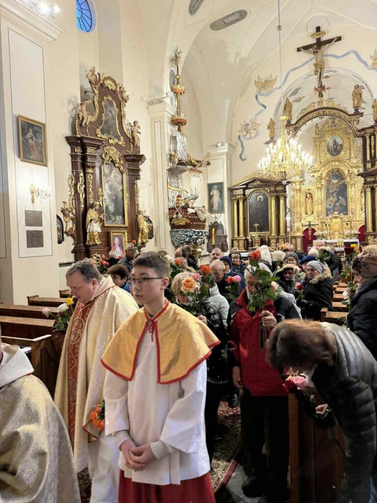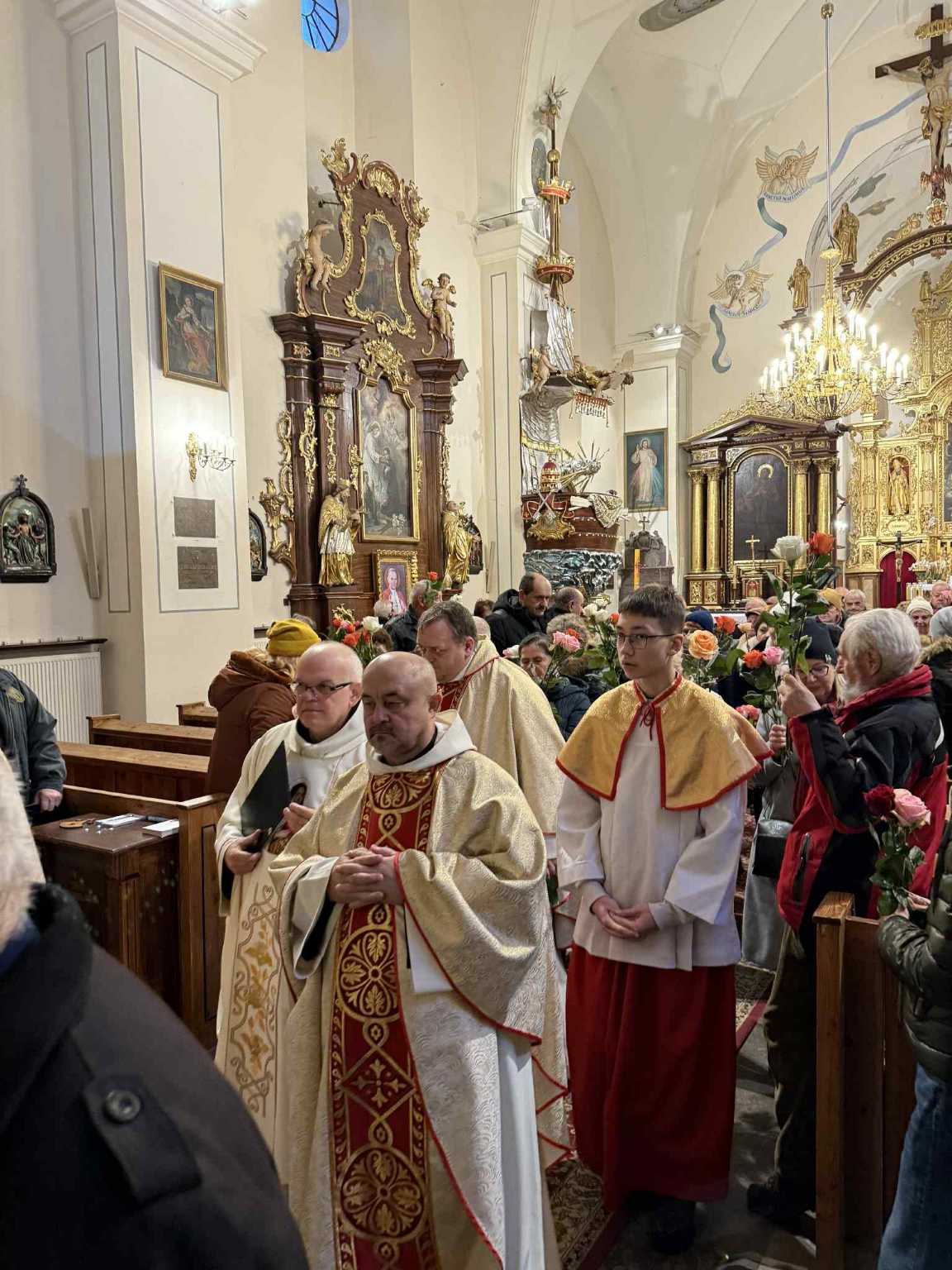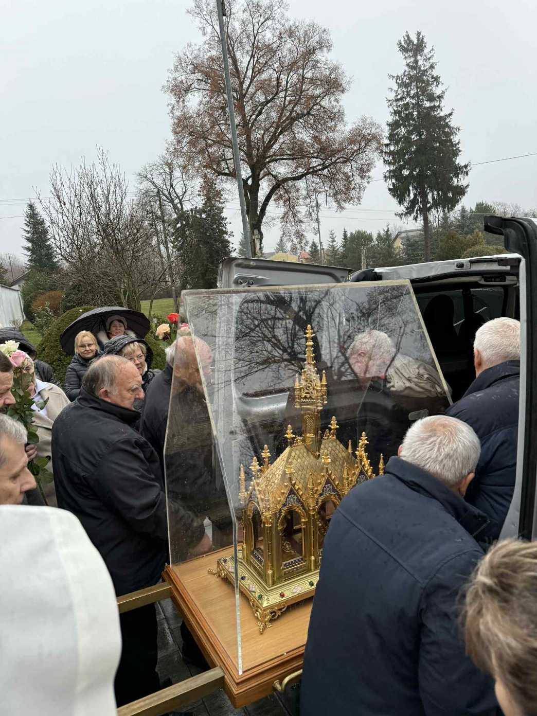 Po Eucharystii ojciec Grzegorz Irzyk, proboszcz parafii, poprowadził modlitwy na zakończenie Peregrynacji. Następnie odbyła się procesja z relikwiarzami do samochodu, w której niesiono setki róż, będących znakiem modlitwy, szacunku i wdzięczności. Całe wydarzenie było pełne wzruszeń – u wielu uczestników można było dostrzec łzy w oczach, będące świadectwem głębokiego przeżycia duchowego i osobistego spotkania ze Świętymi.